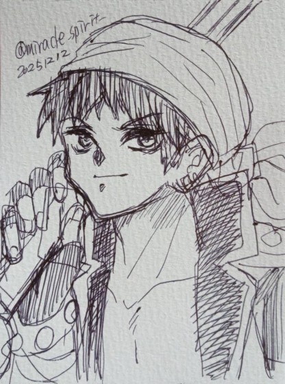 アナログ描き #闘神伝 3のレオン もうちょっとツリ目三白眼かな